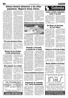 Otra cadena solidaria decidido recolectar dona- mente están suspendidas. competimos en Carmelo sonas que durante esta lante.