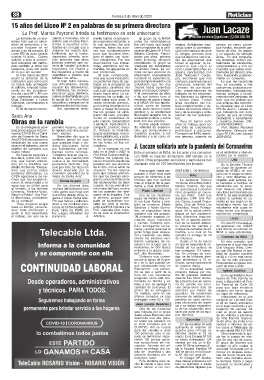 y viernes. Estamos tam- ticio se ha llevado adelan- El Liceo Nº 2 ha realiza-