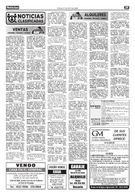 Tel.: 4522 0504 - COLONIA Tel. 4522 7742 Rosario Tratar en Artigas y Agraciada. Tel.: 4552 2633.