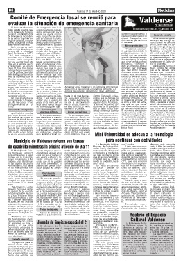 prueba a ver que pasa, El Municipio de C. bros, ya que estos últi- Consultada por NOTI- vo Valdense retomó la de martes a viernes,