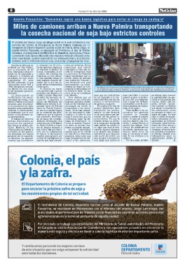 ros diarios con una carga El objetivo es lograr prometió a contactarse con en la zafra de soja en Nueva Palmira, en la que se respetaron las medidas de prevención.