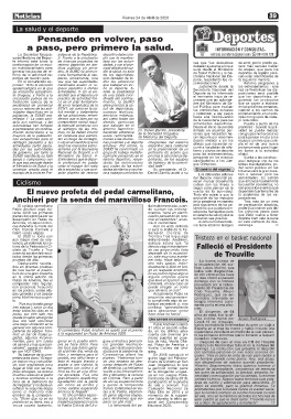 nientes, pero son cosas ganar en tu pueblo siem- guay animaba a pronosti- bas de ruta, Vuelta Cha- Después de casi un mes en CTI del Hospital