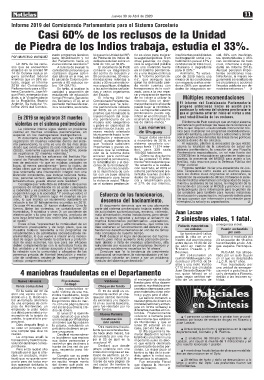 Consigna que “este dato es indicativo de que los rar el sistema penitencia- el 27% de sus internos, miento y asistencia de los casos, la integración de la