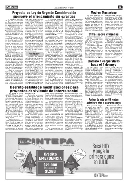 te Consideración remiti- ejecutar las políticas de do capacidad de pago, de desalojar al inquilino (FNVU) recauda unos unas 87.500 viviendas.