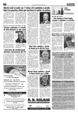 de Arturo Bentancor en Juan Lacaze de las 11 listas lo acom- de inversiones para gene- participación de los can- te que apoya a nivel depar-