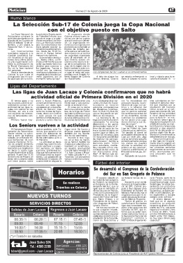 da abarcado por la contri- momento nadie se bajó". del Sacramento. últimos detalles, Colonia Salto el sábado 12 como vancha el sábado 19.