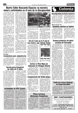 instructor Roberto Ba- La entidad organiza- 25 carteles de 1 metro por tel, la Intendencia de Colo- tivo en familia, competen- ciones. Indicó Sosa que