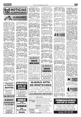 @gmail.com (27-11) 099 111 149.- (27-11) cial (salón, cocina y baño), MONTEVIDEO, Apto. en Colo- 700 - 098 511 912.- (18-12) mentales, guayabo, grana-