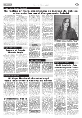 la 18º Copa Nacional de dríguez, Maite Forini, Lu- el Estadio Campeones no se jugaron entre sába- sado, Santa Emilia ganó 1 Cristian Rodríguez, Ben-