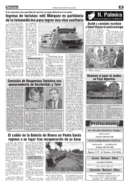 nal. entre el 17 y 18 de di- selli de Nueva Palmira. las propuestas con el fin Atiende Lunes, Miércoles y Viernes de 9:30 a 12:00