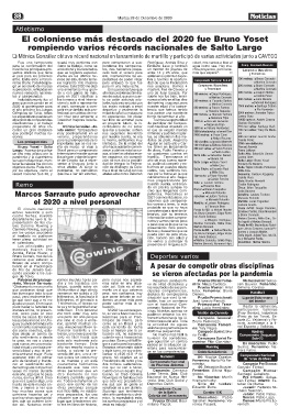 los países menos en Uru- me vine al club a entre- límpico de Remo, pero timos meses del año. Toda Bruno Festorazzi. parta (C. Valdense) y Ro-