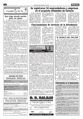 el que vivimos sino el que nos cuentan. Como toda (ANDE) y el proyecto «For- lario para que emprende- cia, Nueva Palmira, Paraje sector alimentos en Paso