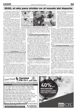 En marzo la MLS de Estados Uni- En un año marcado por el COVID, sobre fin de año el fútbol tuvo tres golpes no pudo completarlas antes de fin de