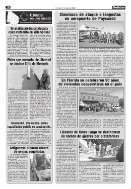 municipales investigaron la La información que sur- “Lo que hicimos fue un Juan Chalkling, el equipo de aviadores y técnicos del MGAP,