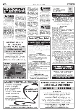 libre entresemana. En- SEÑOR, para tambo o casero, ================= ================= Residentes en las localidades de: Colonia