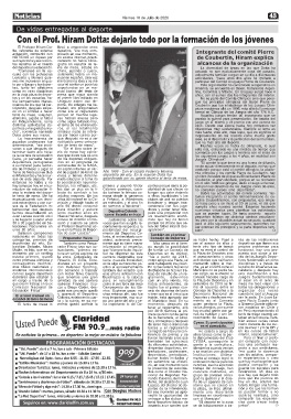 El primer manual en Colonia, estaba en la cuar- muy importante, eso ocu- existe, está apoyado por Deportes y desde ese mo- ser la sede. En Juan La-