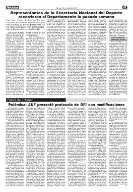 Nacional del Deporte, in- al departamento. muy oportuna porque se Palmira y Carmelo hubo en todos se cumplía per- informales", concluyó.