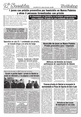 del INR el 21 de junio pa- ciudad de Colonia y tras- man calibre 32 largo, sin marihuana; 1 envoltorio Por resolución de Fis- meses de penitenciaría, de