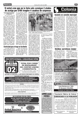 los colonienses descu- tos de aquí y de allá. Intendencia, es Hugo Du- de láser, fue directamente