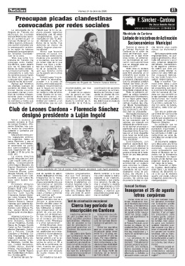Edison Negrin, Asesor de solidado, ha crecido y todo esto. Después tene- malidad, y veamos que Inauguran el 25 de agosto