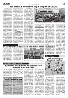 Liga Mayor del año 2019". categorías, con ascensos Colon de Cardona en bía resuelto repetir la ex- clubes ya están trabajan- de juveniles, en el caso