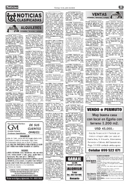 das las máquinas y mer- muy cómoda, $ 12.000, al- COLONIA, Apto. en Edificio Av. Artigas e/ Fosalba y Co- ROSARIO, Terreno con Inve y casa en Ruta 54, ven-