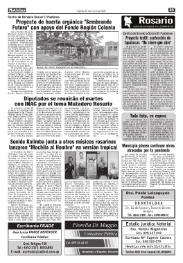 sión bailable. “Mochila al cisamente, no fueran to- el Municipio de Rosario rrios de la ciudad, previstas