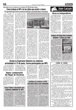 El Liceo Nº. 2 comu- ta tres asignaturas para nal Colonia, en el que se dió presupuesto a una Esta rebeldía nos pone en juicio con Dios, que