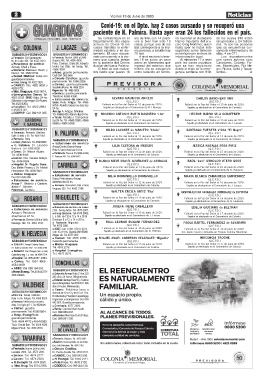 Farmacia: Goncalvez (20/6 al 26/6) Sepelio ya efectuado en el Cementerio de Colonia. Sepelio ya efectuado en el Cementerio de J. Lacaze.