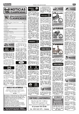 HERRAMIENTAS Y MAQUINARIAS ............................... Pág. 31 ción al día, patente 6 cuo- vendo USD 3.800. Tel. 4586 MOTOS de agua Yamaha