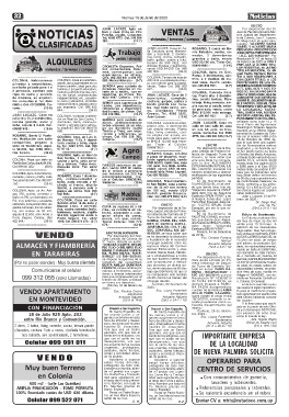 sede de Wanderers, alqui- lo. Tel. 4223 0770. Cel. 098 ga. Tratar al Celular: EDICTO cie de Novecientos metros