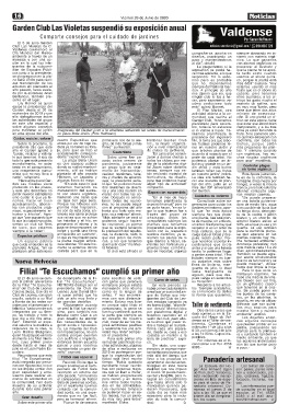 muestra de su accionar ahí sí realmente tuvimos dos en las actividades. manejaban quienes pa- nadería artesanal. Co- Los interesados pue-