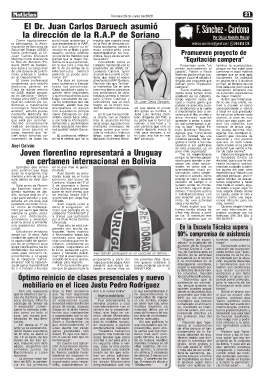Joven florentino representará a Uruguay poco más organizada”. cer de cada alumno”.