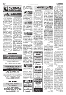 lonia.- (19-6) por separado. Cel. 096 422 les, muy lindo barrio, ven- vendo. Consultas Tel. 4586 GUIENTE INMUEBLE PA-