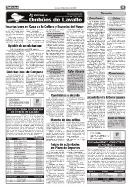 laborando con la poda de del Municipio pero en la el centro de estudios de nes dirigirse al local es- Montes de Oca - Víctor Cos- El 20 án Tarariras cum-
