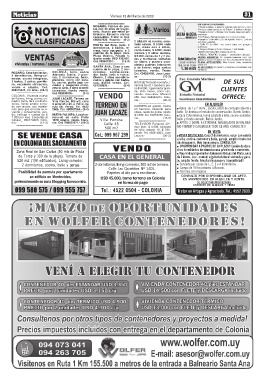 vienda y saneamiento, ven- NUEVA PALMIRA, Local co- JUAN LACAZE obras, rueda de goma, vendo baño. Se destaca el estado de conservación. Barrio Centro.