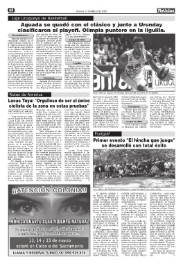 Lucas Tuya fue consul- peso extra para el resto participar de competen- fusionado el goleador fue Lo que se viene bi frente a Defensor Spor-