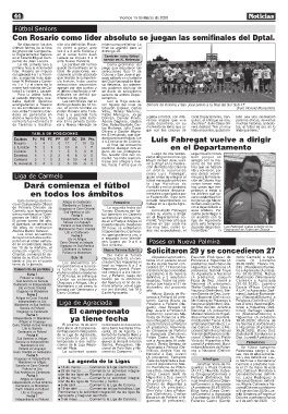 Saravia vs Cerro Oriental 15 de marzo ......... Comienza la Liga Carmelitana. tín Pedroncino de Polan- Jonathan Viola de Hi- Carmelo a préstamo has-