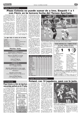 Plaza Colonia es líder del Apertura drán actividad por el fut- a lo que podía suponer-