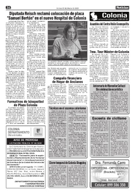 Tisiología y la moderniza- tary Club de Colonia y de cías en locales comer- tra a disposición un pal de Monseñor Car- encargado de la Parro-