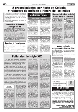 La policía concurrió calle Rivas Erguis se lo- de la finca y comprobó que determinó que quedaran en Estas encargaturas 30/3 Juzgado Letrado
