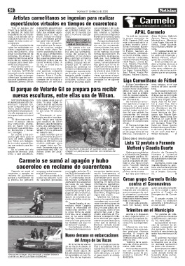 Carmelo se sumó al uruguayo sobre la pande- con ímpetu, entre las 21 y en muchos barrios se es- política de la ciudad. en el ámbito comunita-