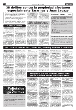 9 delitos en Tarariras La madrugada del pa- ronado. Unos 10 minutos