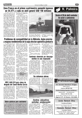 el magro resultado de la más de la soja también realizan su trabajo (en controles sanitarios que de Nueva Palmira. un minuto y se comple-