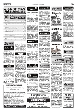AUDIO Y VIDEO ............................................................. Pág. 31 parasol c/espejo y luz, Llamar de 11:30 hs. en ade- HONDA 50 c.c., año ´77, im-