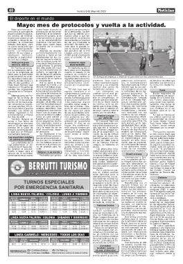 gubernamental de even- mientos grupales y la ter- testeo positivo de tres in- En Europa se empieza a reactivar la actividad con los entrenamientos.