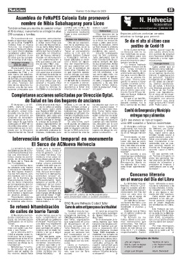 en distintos ámbitos. que son de hierro". Finali- Intervención urbana de ACNuevaHelvecia Libro en este mes de mento del año" explican.