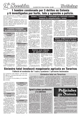 melo, agresión a policía en Tarariras, hur- tiva del PADO por ruta 221 libre 32, dinero en mone- de madera. culpable, un delito de te-
