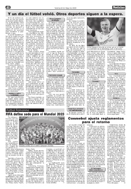 FIFA define sede para el Mundial 2023 dio el retorno de la activi- bre la actividad pasa a tes en aquel país.