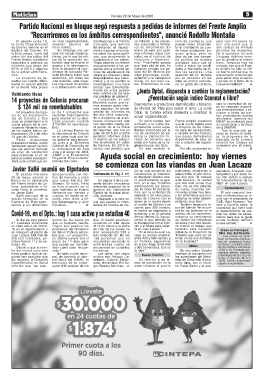 El pasado lunes 18, se vota negativamente, tido Nacional y el Partido se refieren a las pasan- ción de confianza que pero cien mil pesos no